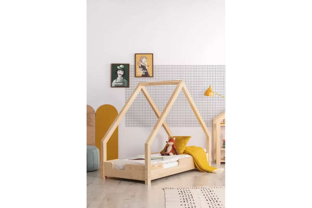 Ta postelja ni le prostor za počitek – je prostor, ki spodbuja ustvarjalno razmišljanje in razvija otroško domišljijo. Njen edinstven videz, ki spominja na hiško, spodbuja aktivno igro in raziskovanje, hkrati pa otroku zagotavlja lasten, varen kotiček. Njena nizka konstrukcija in okrasne stranice otrokom olajšajo varno uporabo, tako pri vstopanju kot izstopanju. Nežni, zaobljeni robovi in odsotnost ostrih vogalov povečujejo raven varnosti pri uporabi. Zaradi tega je ta postelja idealna rešitev za starše, ki iščejo izdelek, ki združuje funkcionalnost in varnost z izvirnim dizajnom in podpira zdrav razvoj.