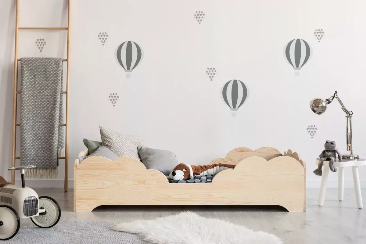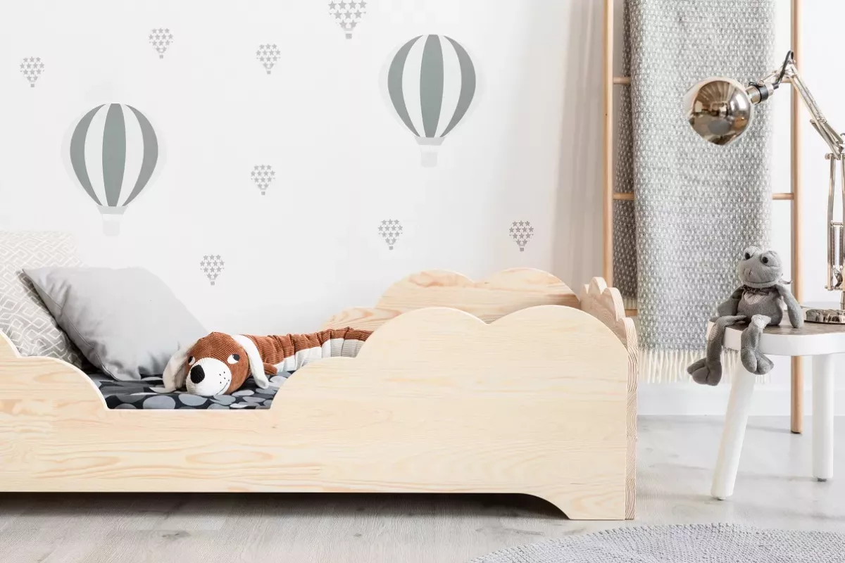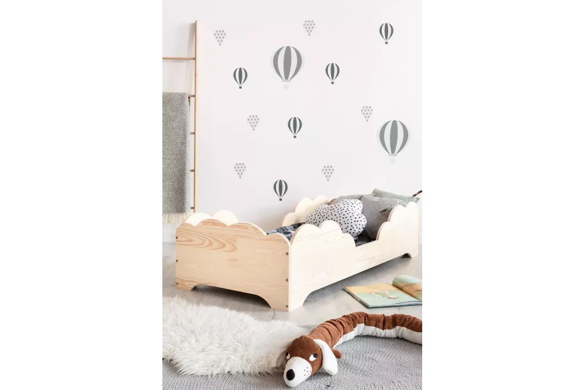 Ta postelja ni le prostor za spanje, temveč tudi prostor, ki razvija otrokovo domišljijo. Preprost, a eleganten dizajn spodbuja igro in počitek, nizka konstrukcija pa omogoča enostavno vstopanje in izstopanje tudi najmlajšim. Zaradi uporabe naravnih materialov je postelja okolju prijazna in varna za otroka, kar je odlična izbira za vsakega starša.