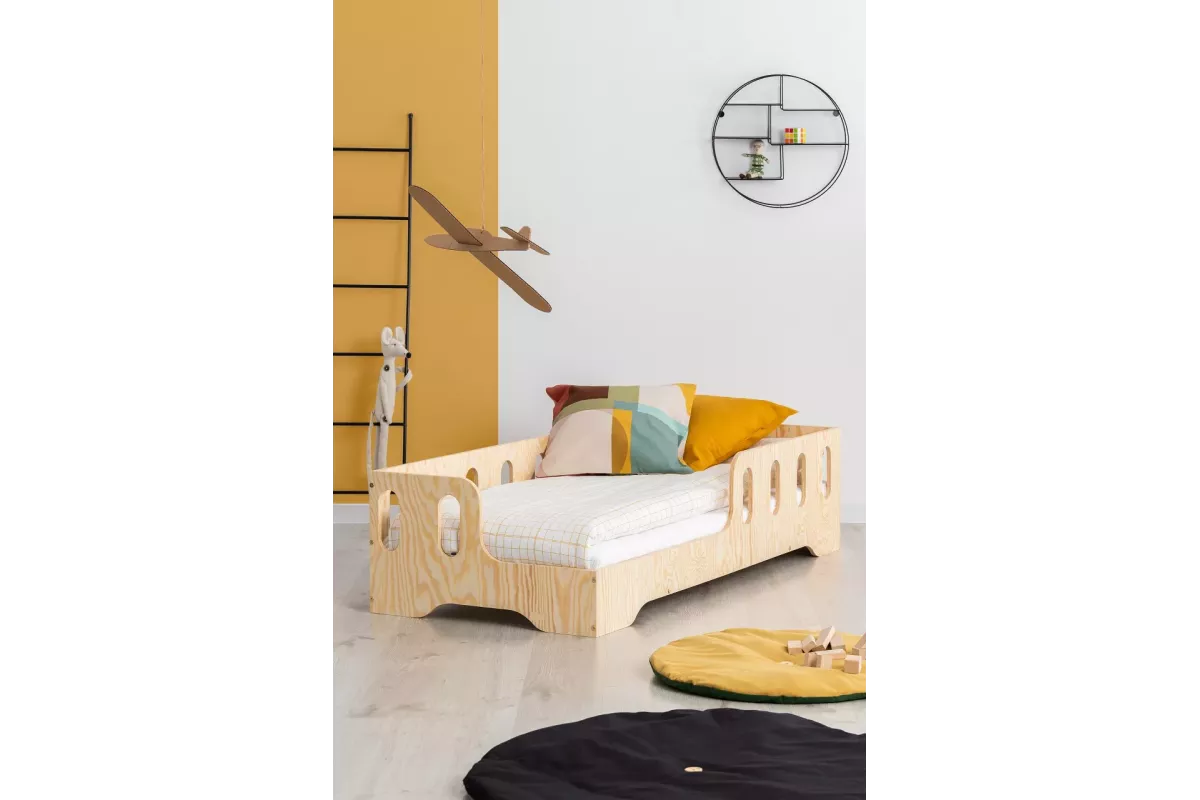 Ta postelja ni le prostor za spanje, temveč tudi prostor, ki razvija otroško domišljijo. Preprost, a eleganten dizajn spodbuja igro in počitek, njena nizka konstrukcija pa omogoča enostavno vstopanje in izstopanje tudi najmlajšim. Zahvaljujoč uporabi naravnih materialov je postelja okolju prijazna in varna za otroka, kar jo naredi za odlično izbiro za vsakega starša.