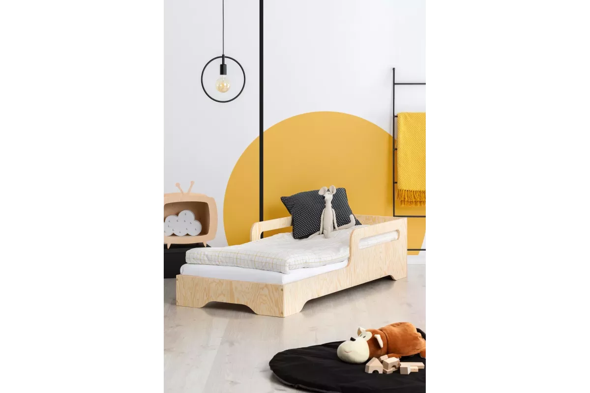 Ta postelja ni le prostor za spanje, temveč tudi prostor, ki razvija otroško domišljijo. Preprost, a eleganten dizajn spodbuja igro in počitek, njena nizka konstrukcija pa omogoča enostavno vstopanje in izstopanje tudi najmlajšim. Zahvaljujoč uporabi naravnih materialov je postelja okolju prijazna in varna za otroka, kar jo naredi za odlično izbiro za vsakega starša.