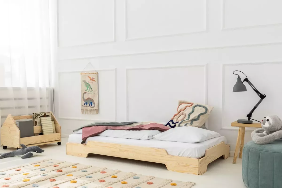 Ta postelja ni le prostor za spanje, temveč tudi prostor, ki razvija otrokovo domišljijo. Preprost, a eleganten dizajn spodbuja igro in počitek, njena nizka konstrukcija pa omogoča enostavno vstopanje in izstopanje, tudi za najmlajše. Zaradi uporabe naravnih materialov je postelja okolju prijazna in varna za otroka, kar jo naredi odlično izbiro za vsakega starša.