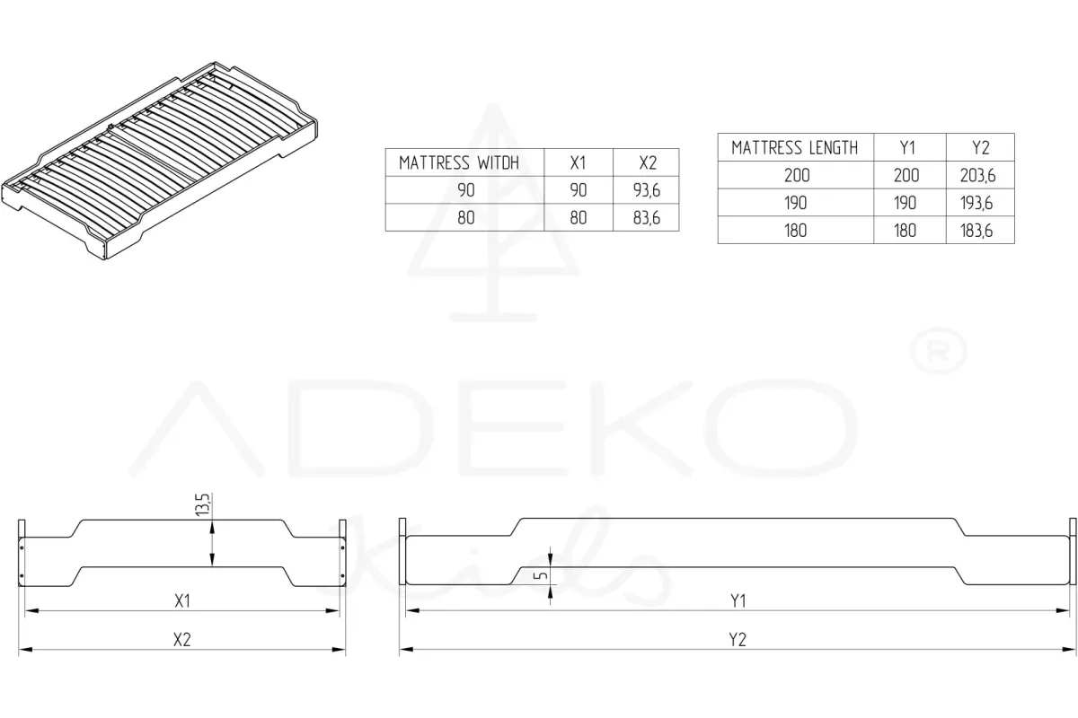 - Vzmetnica: Vzmetnica ni priložena kompletu – izberete jo lahko na naši spletni strani v zavihku »vzmetnice«. Priporočamo debelino od 8 do 14 cm.